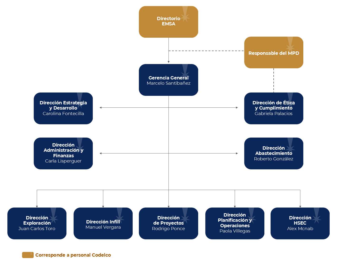 Desde el punto de vista exploratorio, las actividades son supervisadas por la Gerencia Corporativa de Exploraciones de CODELCO, quien además asume la definición estratégica de los programas de exploración.